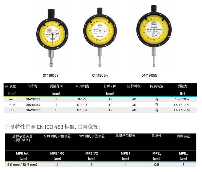 標準型,測量范圍為 1 & 5 mm