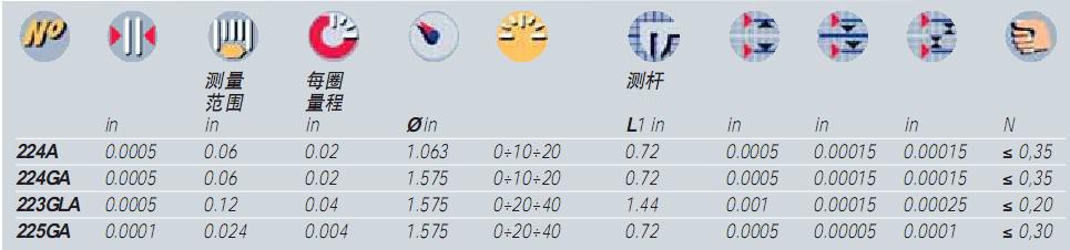 COMPAC 240系列,標準型號TESA杠桿指示表(英制) |
