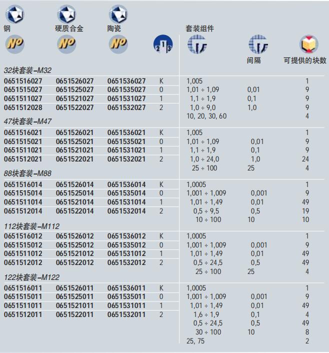 TESA 量塊系列,公制