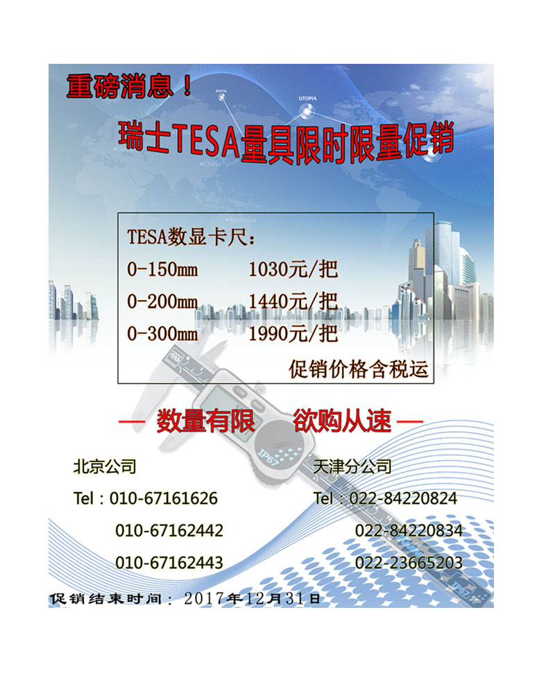 從即日起,瑞士TESA量具限時(shí)限量促銷!詳見(jiàn)海報(bào)