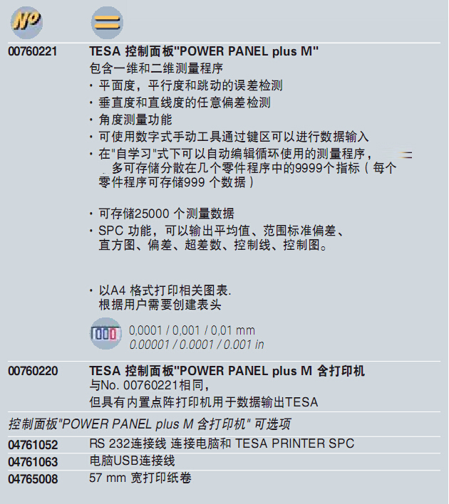 TESA MICRO-HITE plus M 350/600/900 控制面板